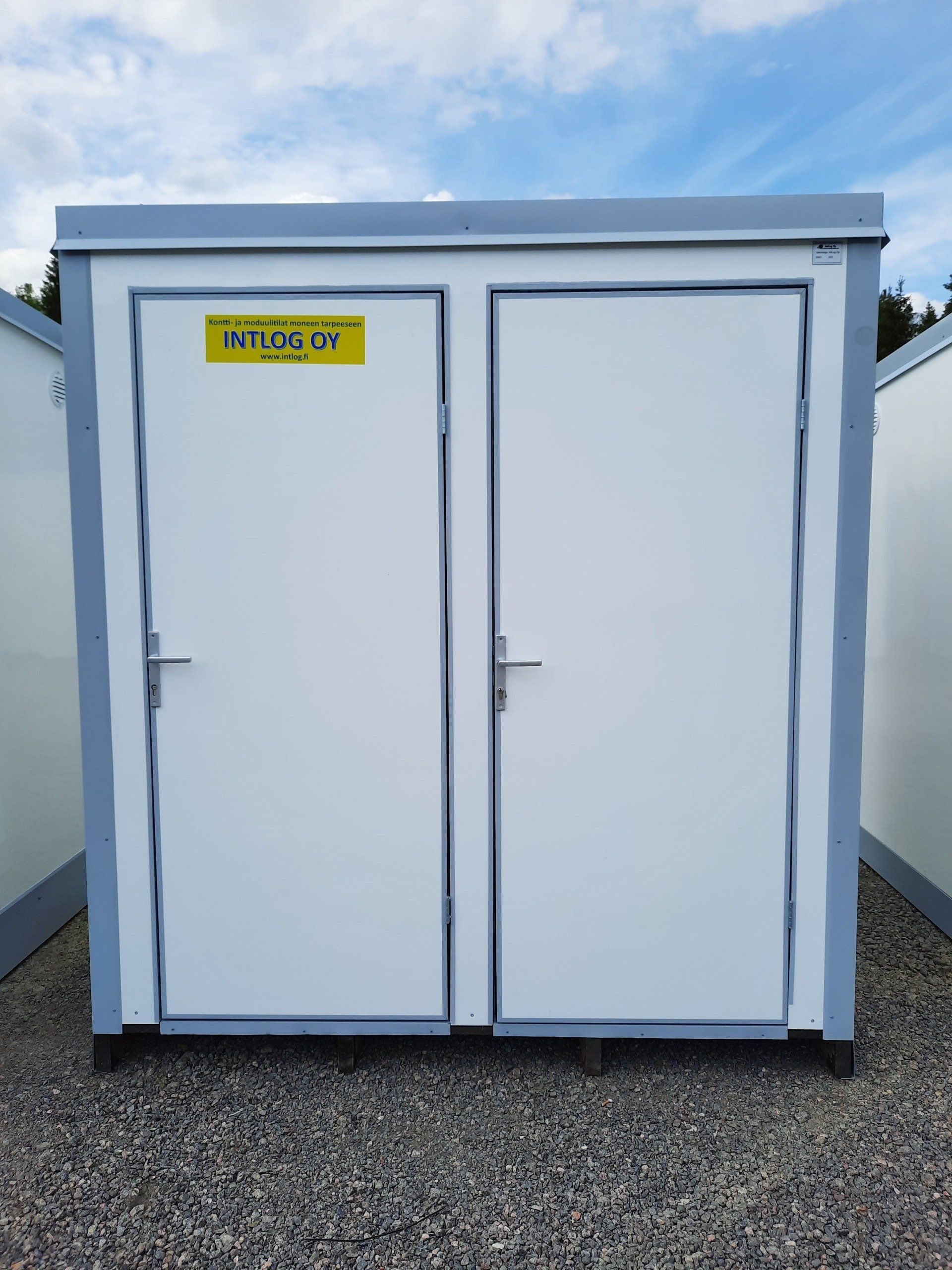 Small compact base, where are doors both separate toilets.
