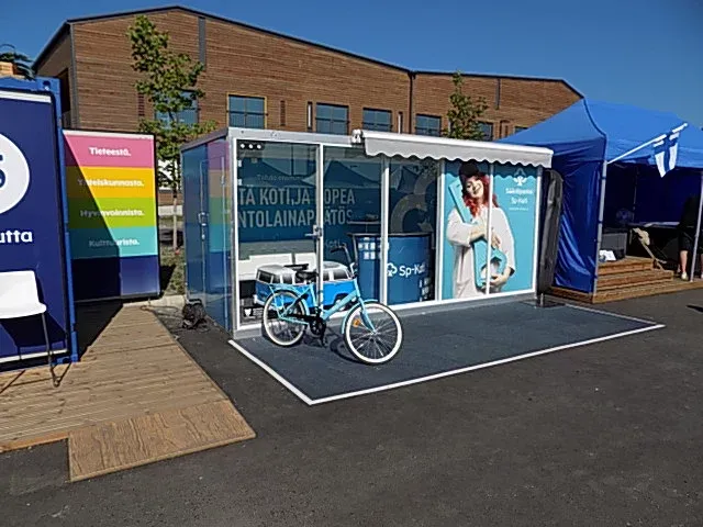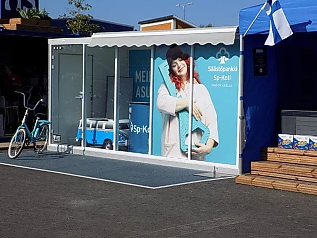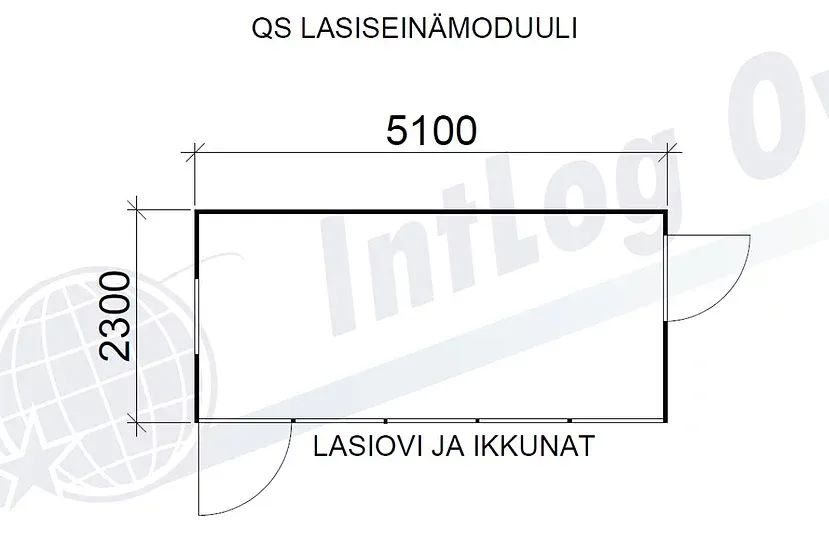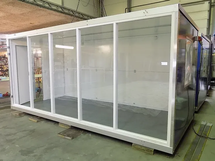 QuickSpace lasiseinä kontti yksi sivu lasia jossa myös lasiovi.
