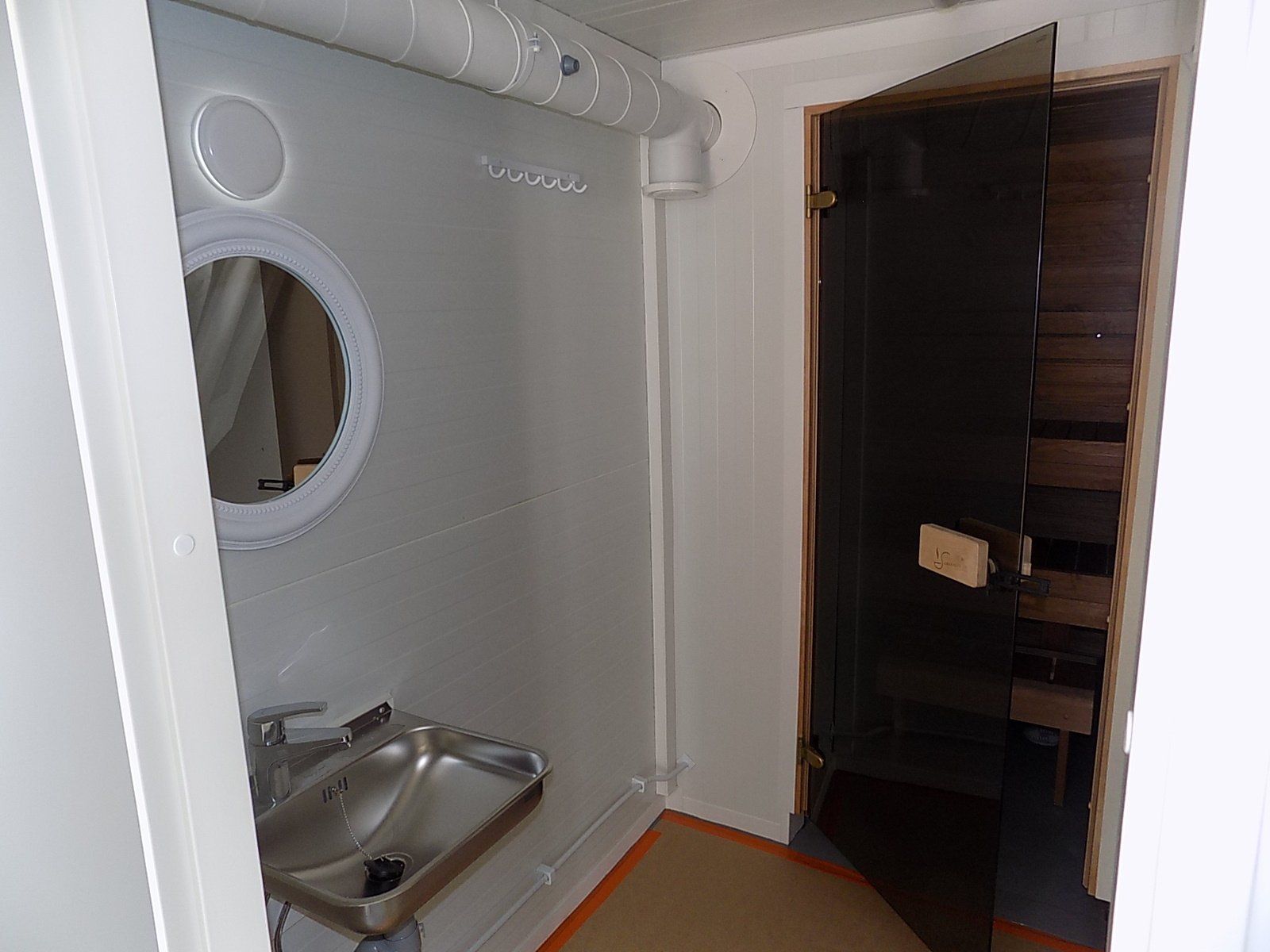 - Kuvan mukaiset sauna-, suihku- (kaappi 800 x 800mm) ja pukuhuonetilat