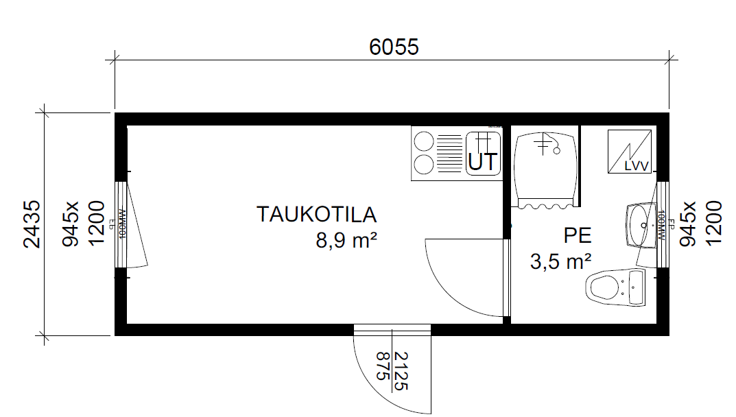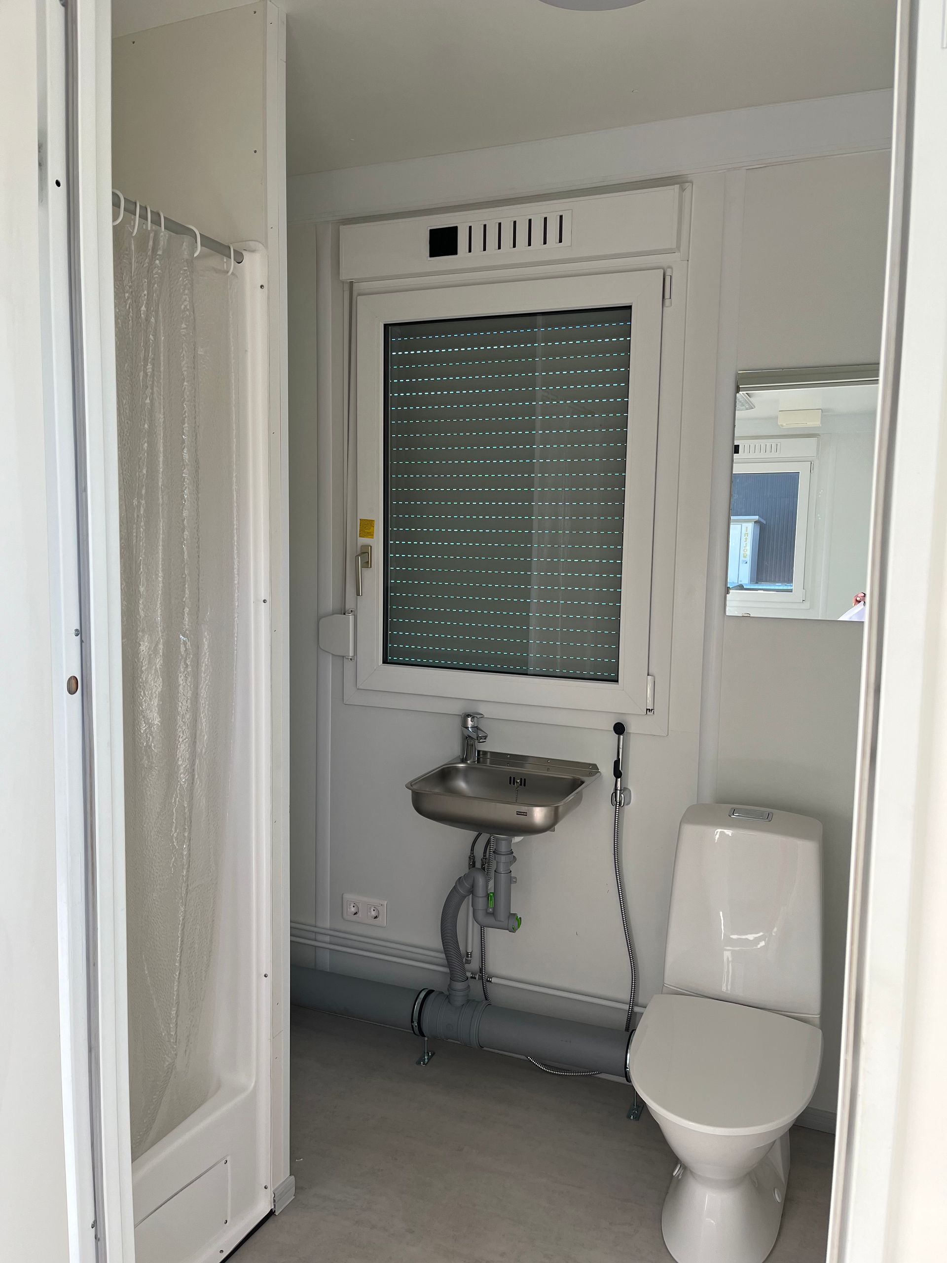 Tila sisältää minikeittiön, suihkun ja vessan.
